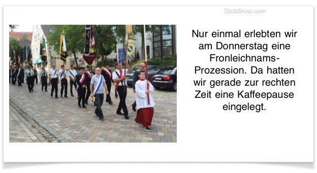 Gegen 12 Uhr erreichen wir den knapp 1000 Meter hohen Hulftegg-Pass, auf dem ein Restaurant mit Sonnenterrasse zu einer kleinen Rast einladen würde. Da wir aber erst eine halbe Stunde zuvor eine – der Fährfahrt geschuldete – späte Kaffeepause eingelegt haben, fahren wir noch ein wenig weiter – letztlich bis St. Peterzell im Neckartal, wo wir mit dem „Landgasthof Schäfle“ eine gute Wahl treffen. Die selbstgemachte Gemüsesuppe und Schweizer Büffel-Mozzarella „an“ Blattsalat treffen genau unseren Geschmack. Franz gönnt sich noch ein ordentliches Stück Fleisch – und alle sind zufrieden.